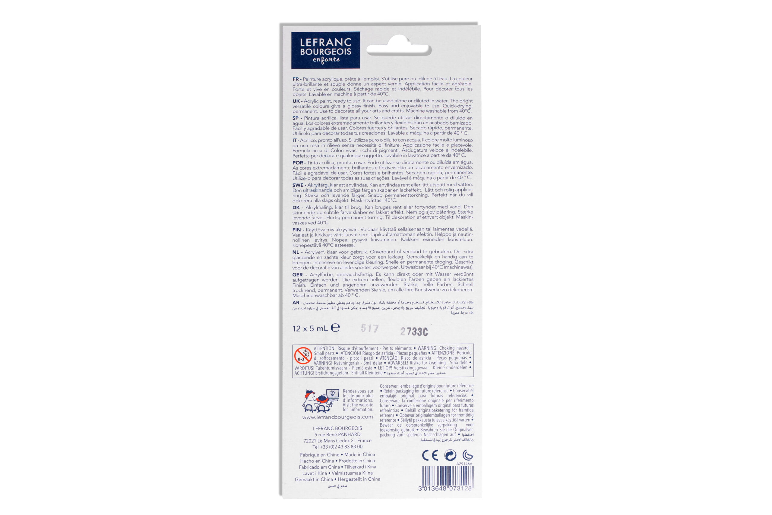 Farbki akrylowe „Lefranc Bourgeois – peinture acrylique” skaładają się z 12 kolorów umieszczonych w małych pojemniczkach o objętości 5 ml. Niech mała pojemność Cię nie zmyli – farbek spokojnie wystarczy do pomalowania kilku desek kreatywnych.